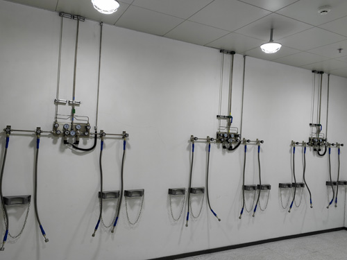 1.氣瓶間內負荷調試面板開關與實驗別墅地下室的氣路最終互相運用SS316LBA管做出對接,輸送途徑內的表面滑潤度為Ra<0.4umBA級輸送途徑。